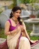 • Cream-coloured and purple banarasi saree